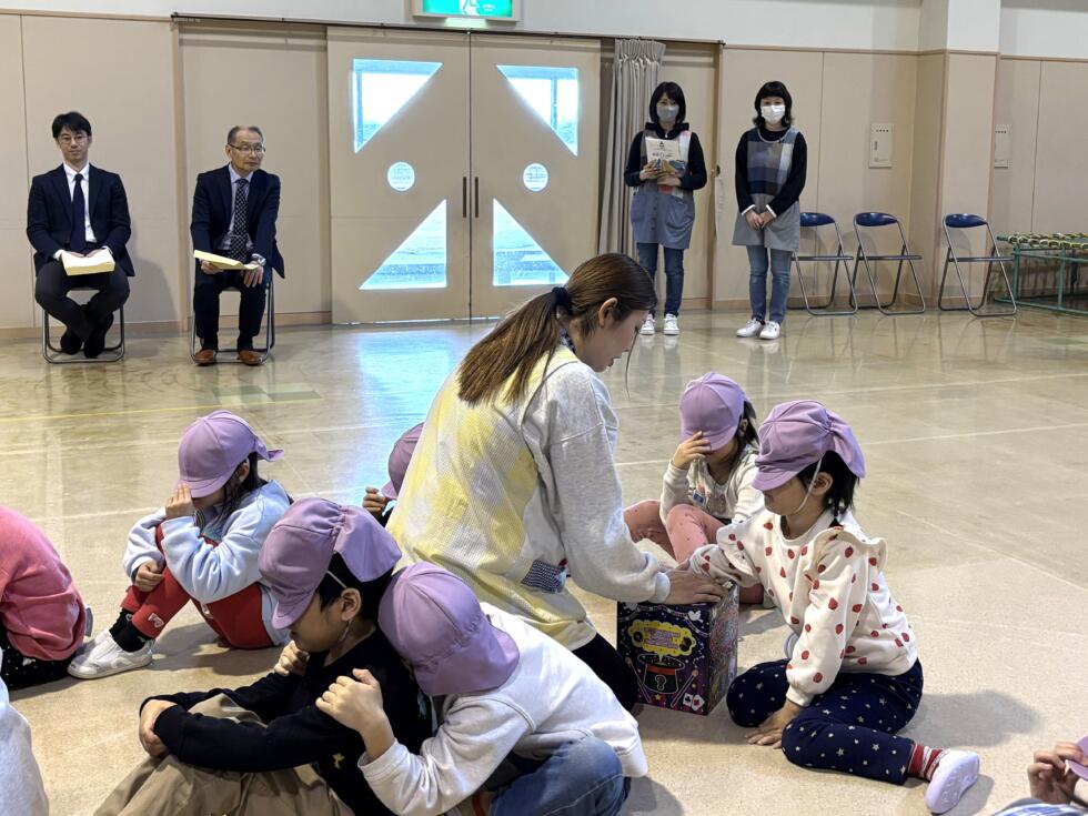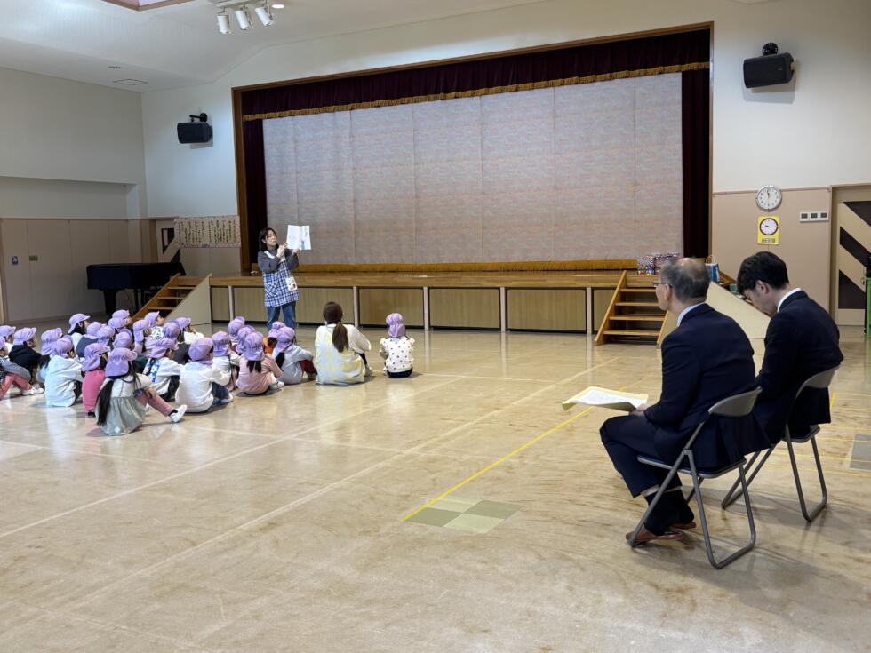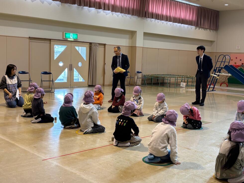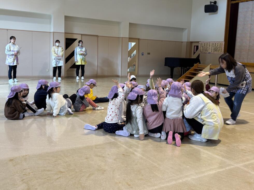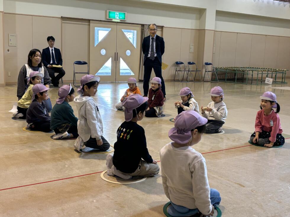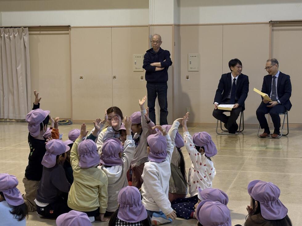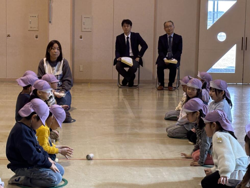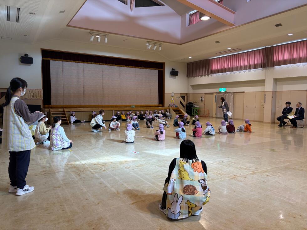 園内を巡回した後は、年長組の保育をご覧いただきました。この日の保育は、聴覚や触覚などの感覚を意識した活動を取り上げてみました。