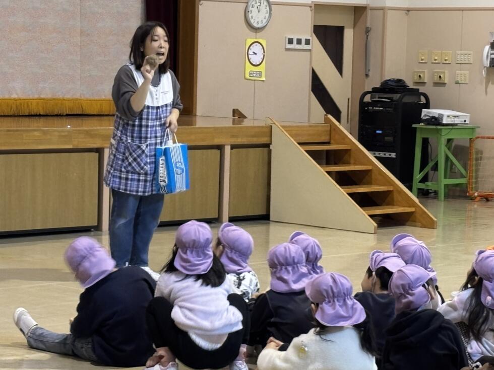 感触だけでなく、玉ねぎの場合は皮のカサカサとした音も聞こえてることに気づく子もいました。