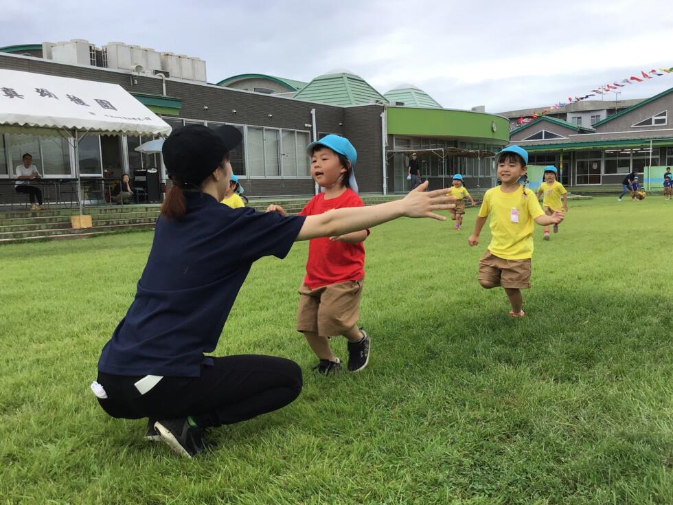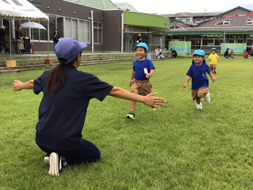 昨年度は20m先にいる、お家の人に向かうことが精一杯だった子ども達も、自分の力で30m先のゴールまで走り切ることができるようになりました!