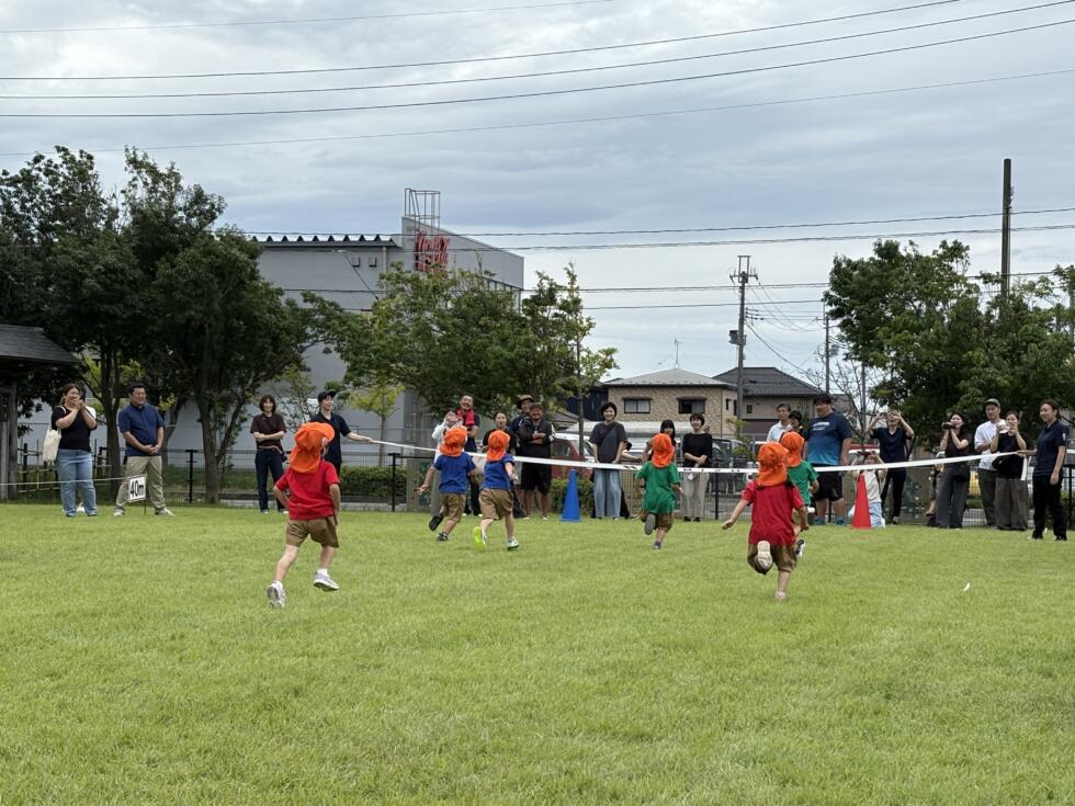 年中組は40m先にある、ゴールを目指して走ります。みんな、全力でゴールに向かって走ってくれました。