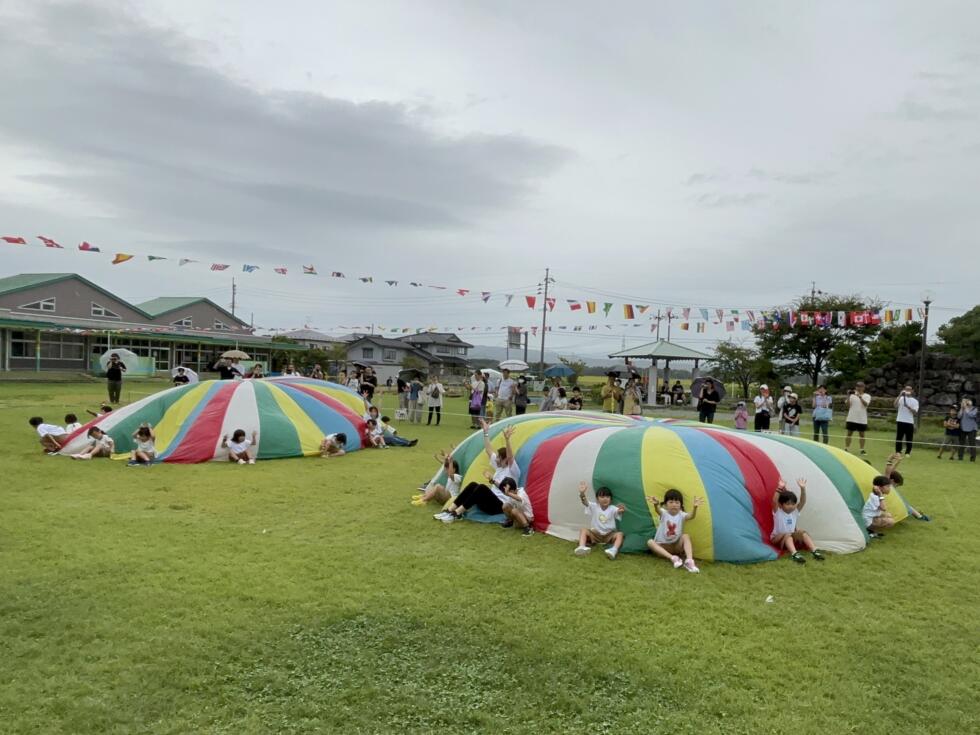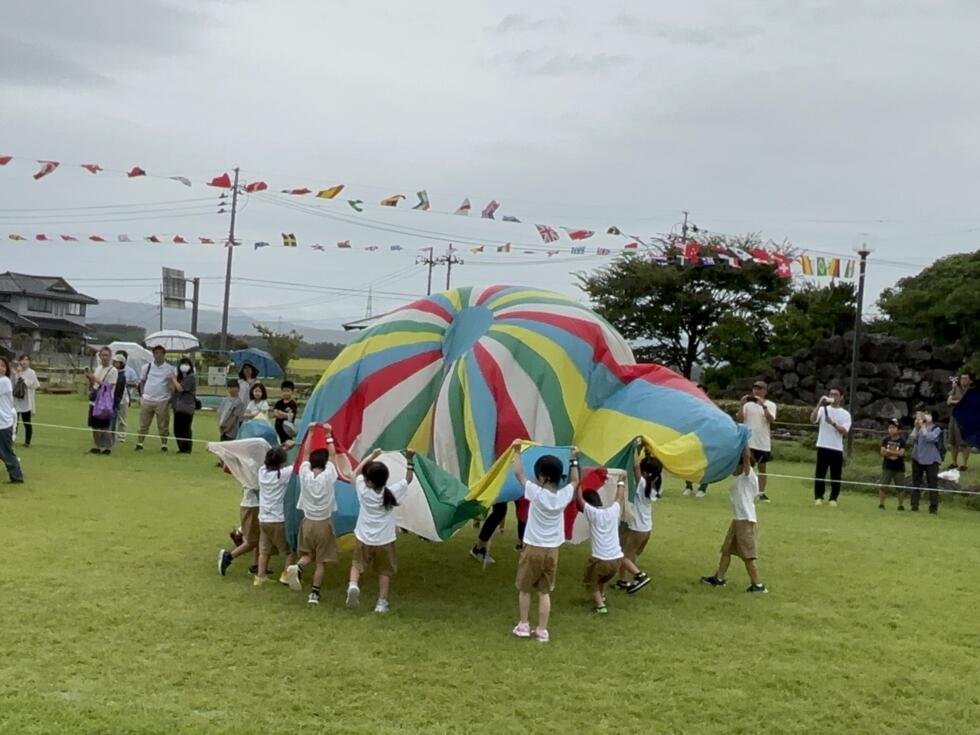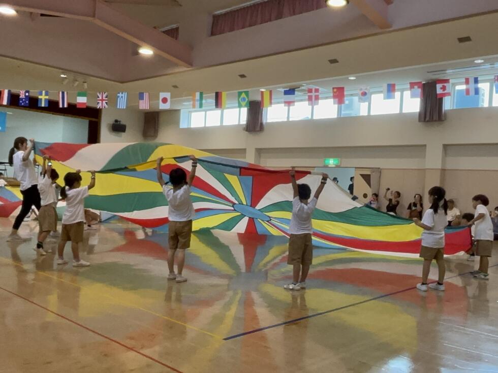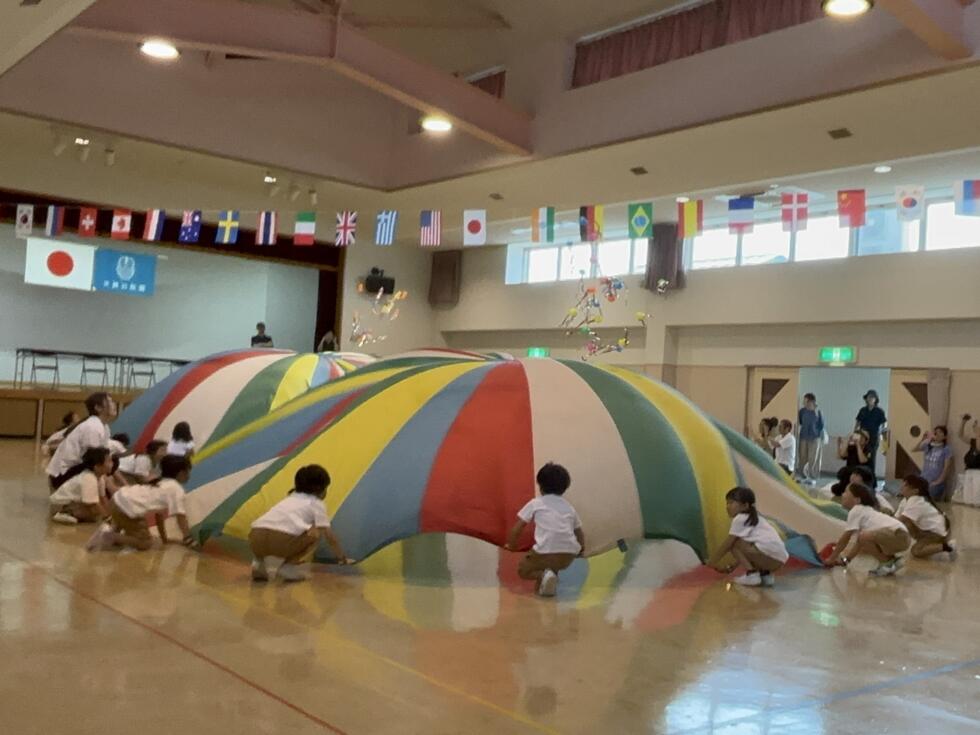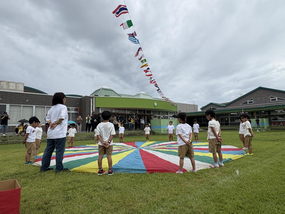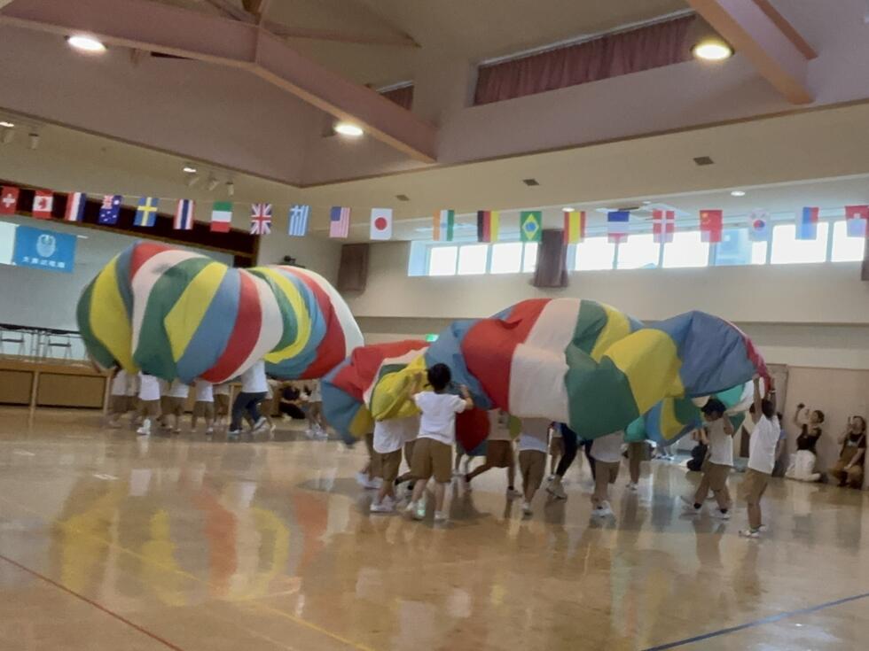雨を含んでバルーンが重かったり、風が強かったりと、年長組のみんなが思い描いていた演技はできなかったかもしれません。
