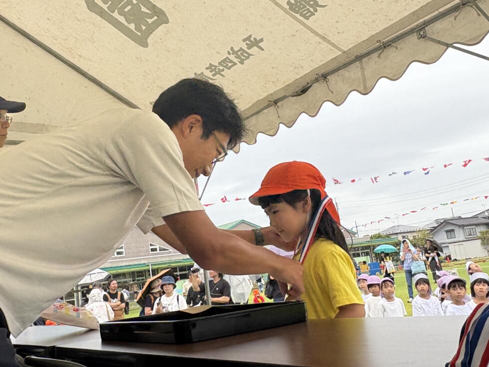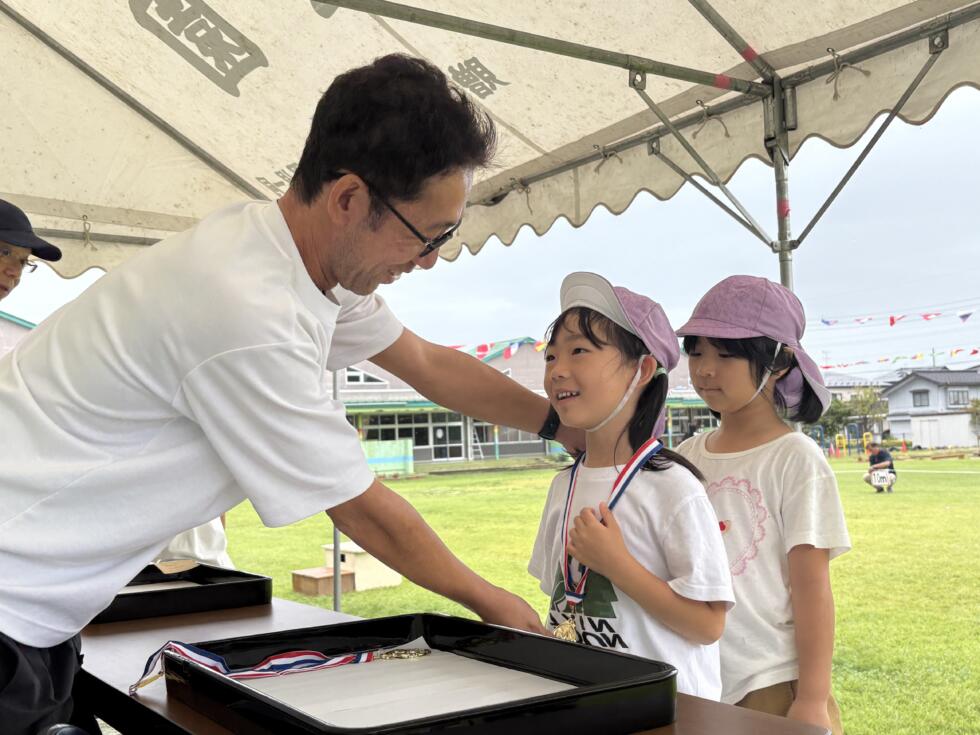 年中組、年長組もPTA会長さんと副会長さんからメダルを、園長先生からは賞品をいただきました。