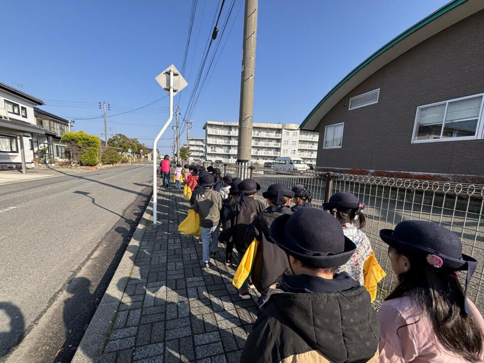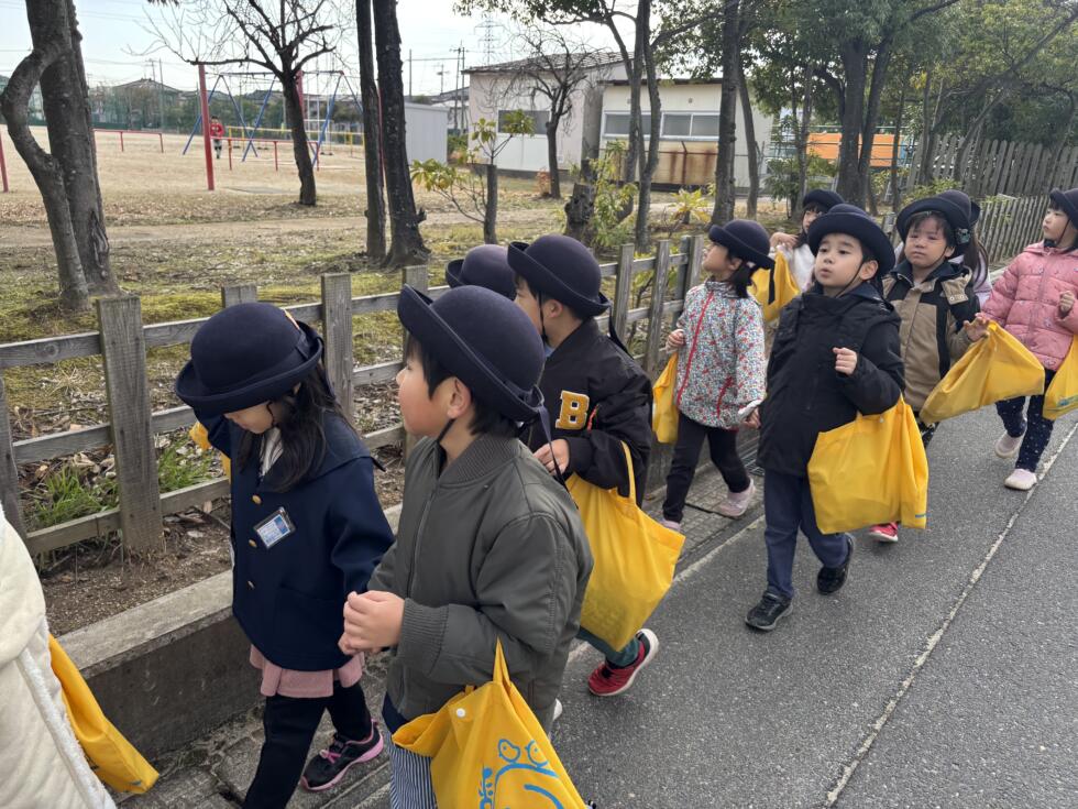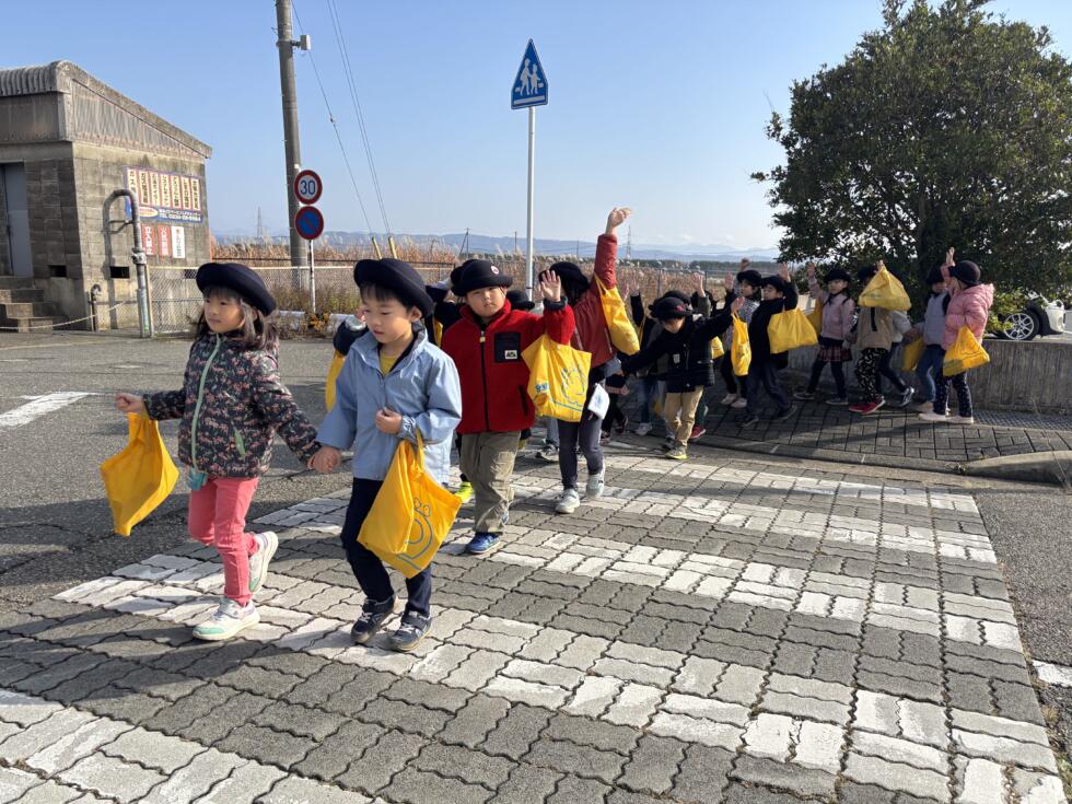帰りも歩いて幼稚園に戻りました。行き道よりも自分達で交通ルールを意識して歩く様子が見られました。