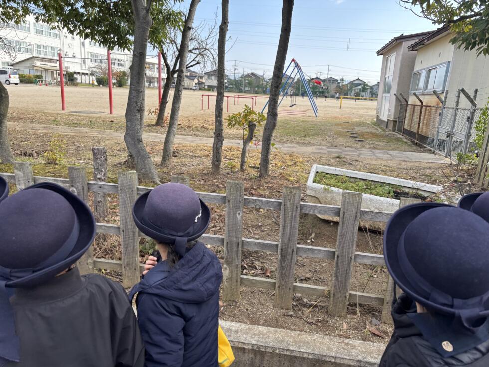富士見小学校が見え、グラウンドで運動している小学生が見えました。