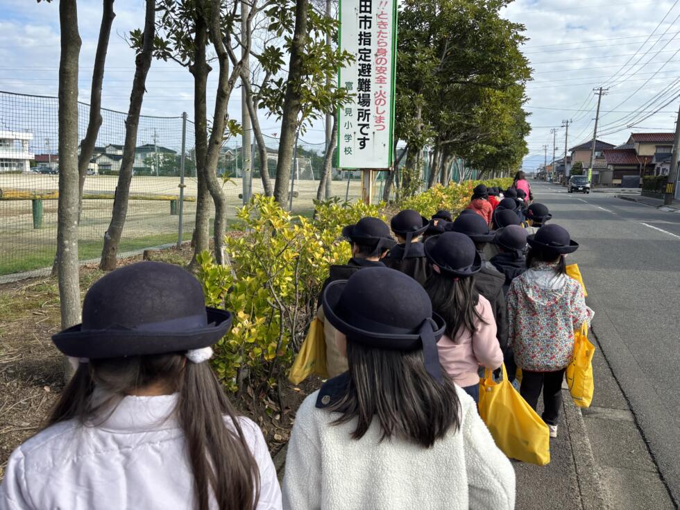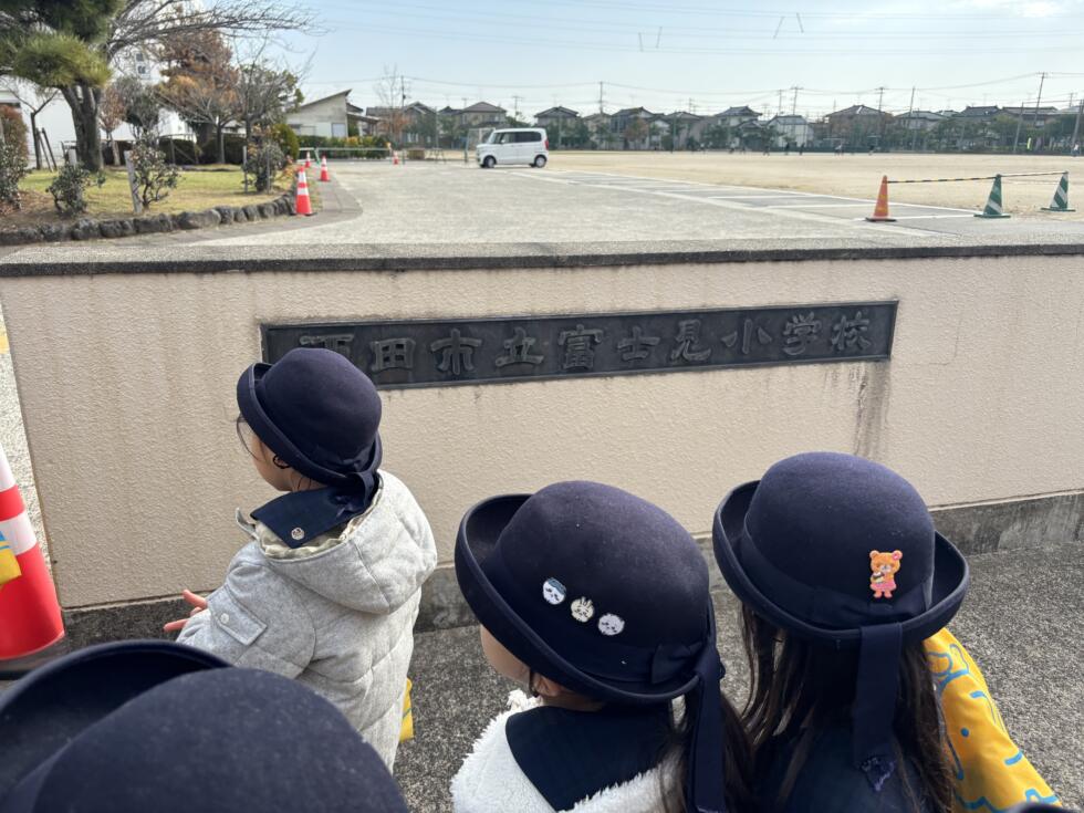 当日は天気が良かったため、小学校への就学も見据え、富士見小学校まで歩いて出かけました。道路の歩き方なども確認しながら、小学校に向かいましたよ。