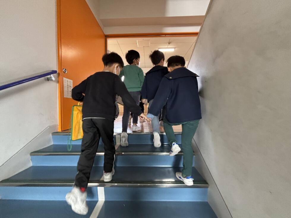 幼稚園と同じように廊下が真ん中で分けられていることに気づいたり、学校には階段があることを知ったり…