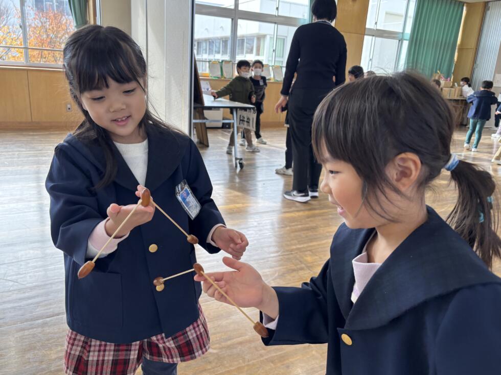 遊びに誘い掛けてくれたり、遊び方を教えてくれたりと、1年生のお兄さんお姉さんの優しさに触れながら、年長組のみんなは楽しい時間を過ごすことができました♡