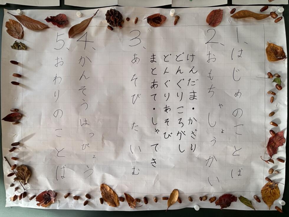 秋の自然物を使った遊びがたくさんあり、年長組の子ども達も夢中になって遊んでいました🍁
