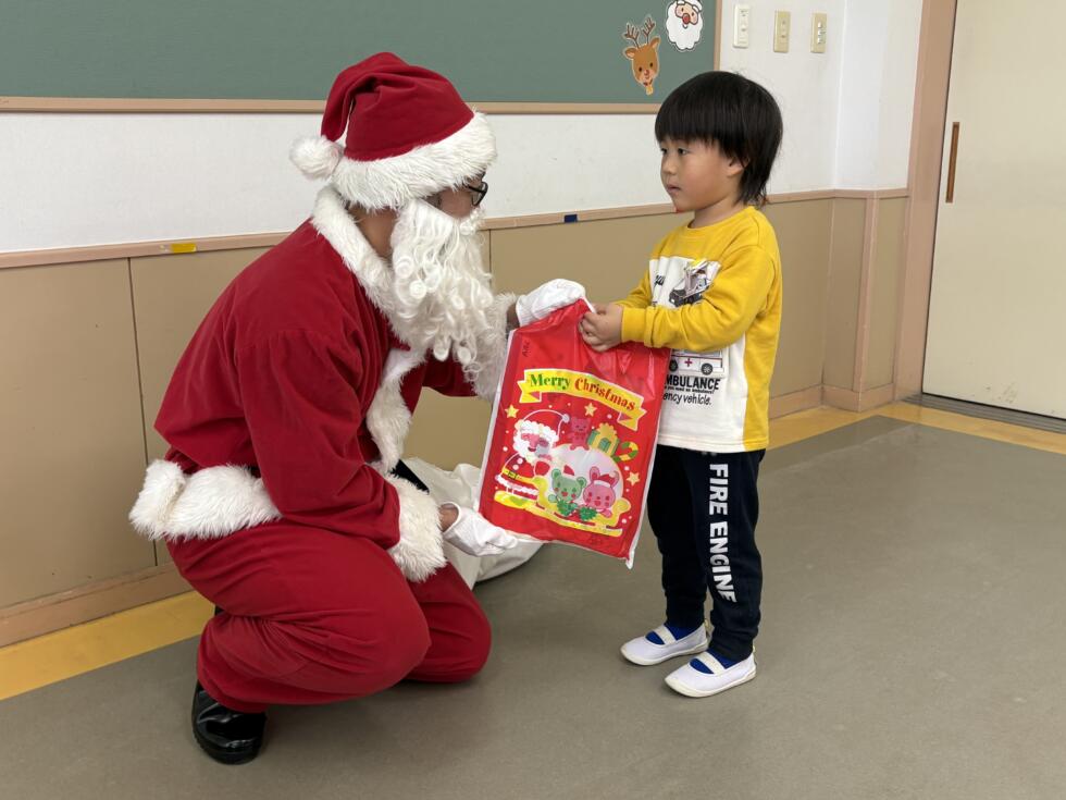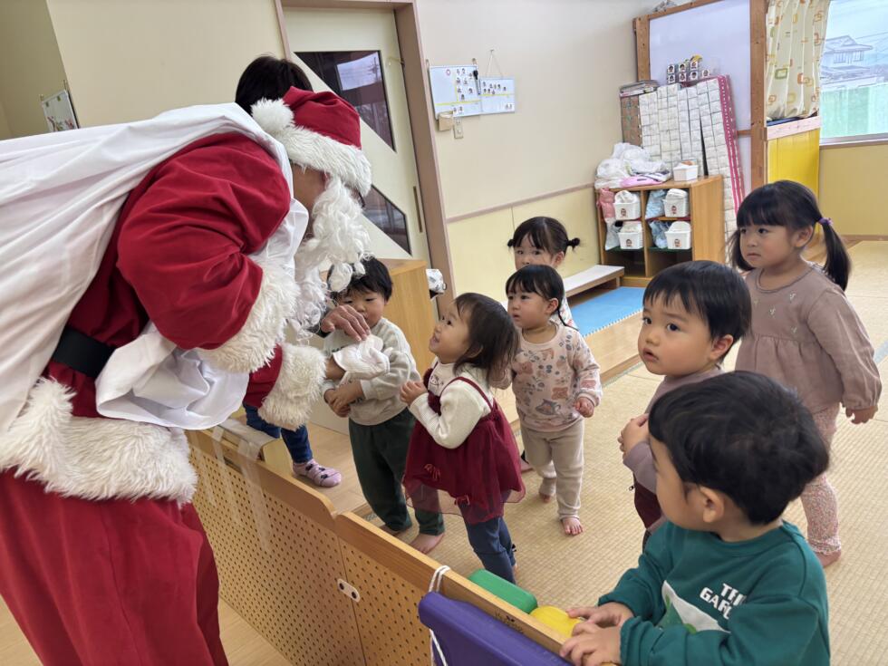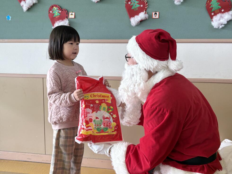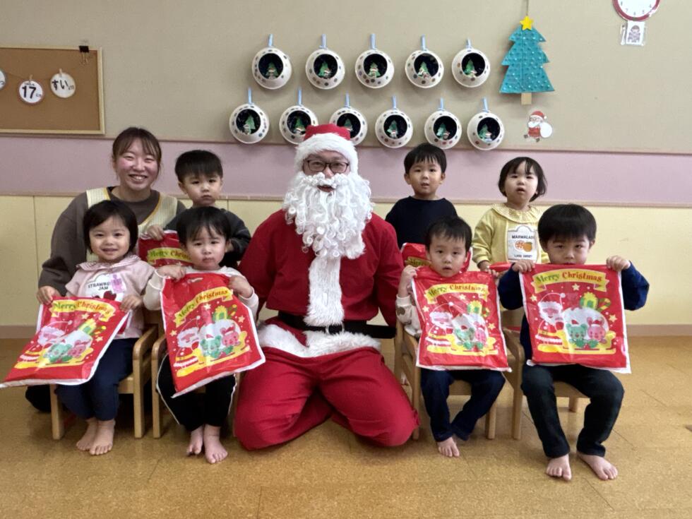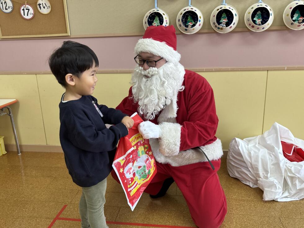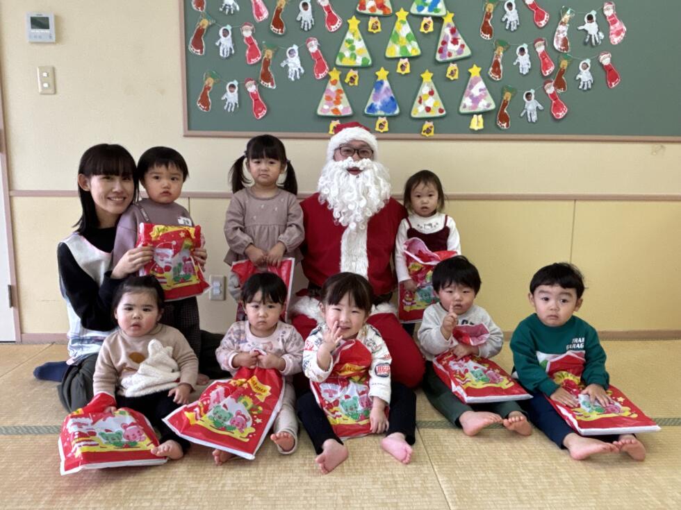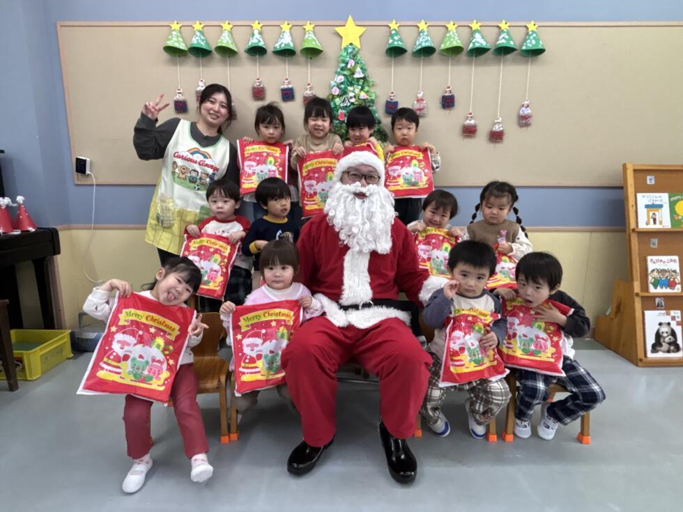 みんなドキドキワクワクしながらサンタさんの側へ行き、一人一人プレゼントを受け取ることができました💓