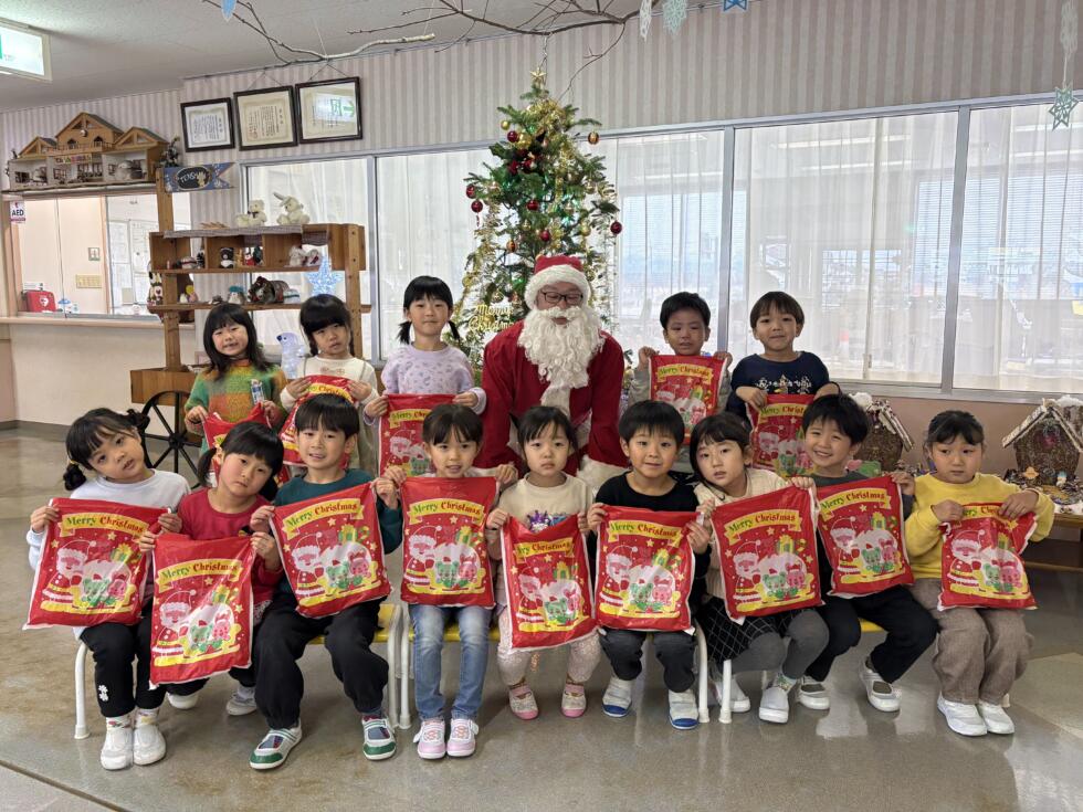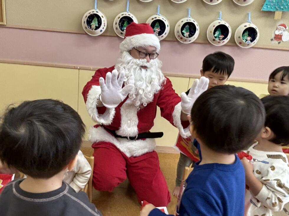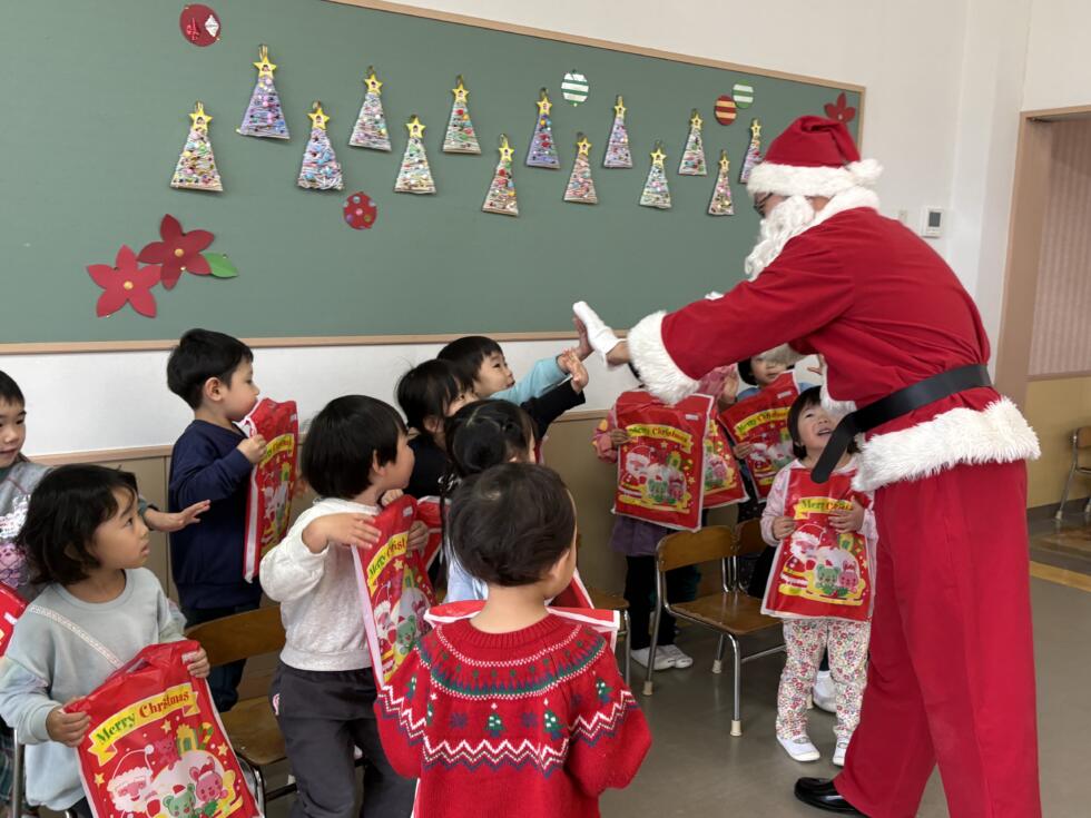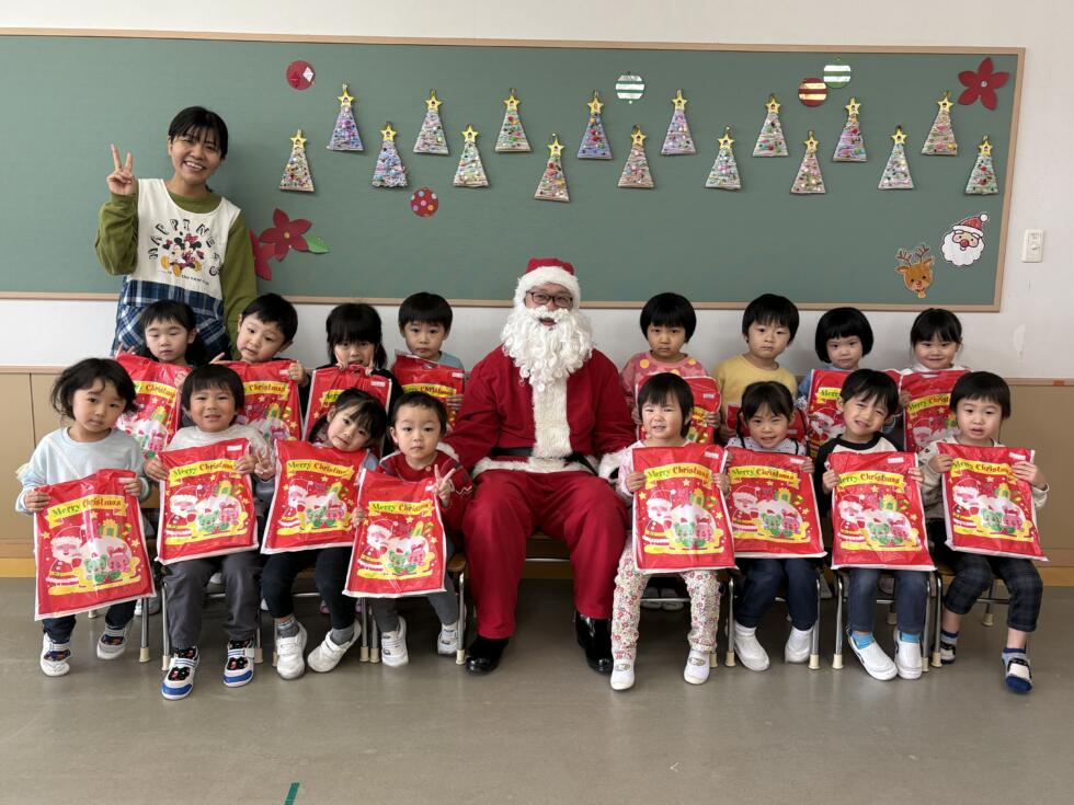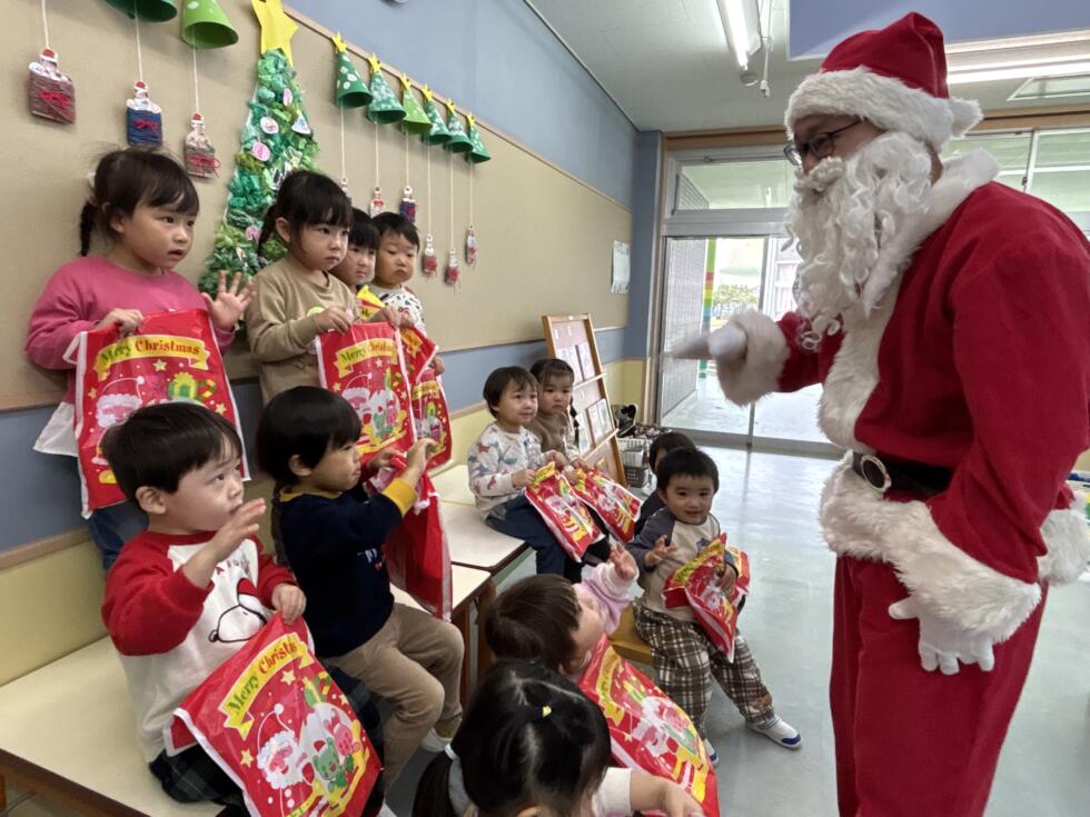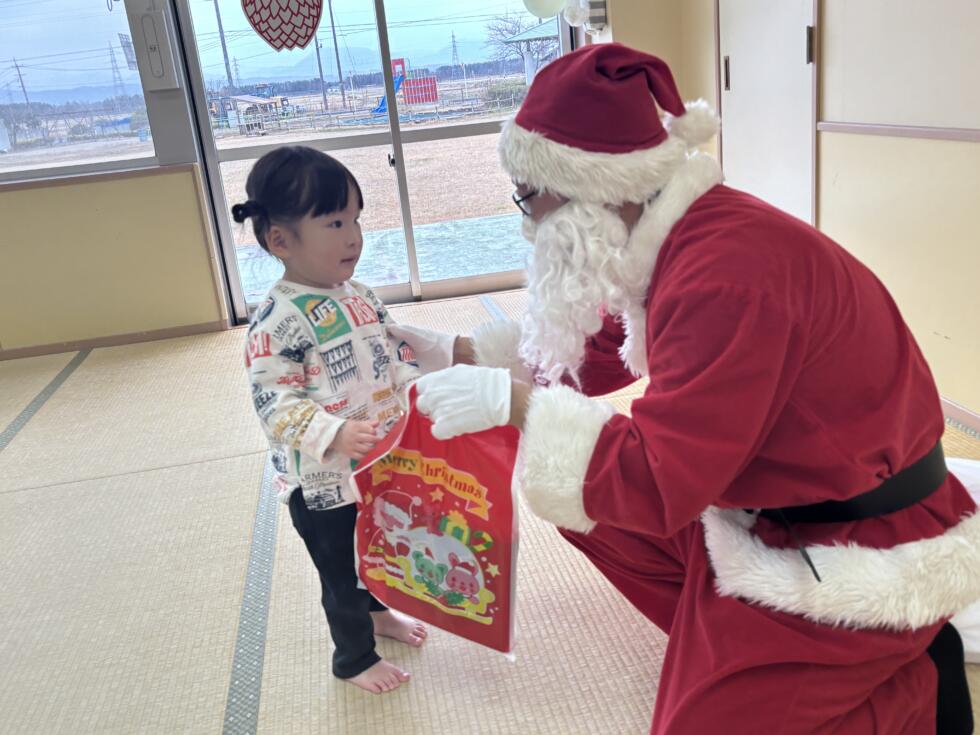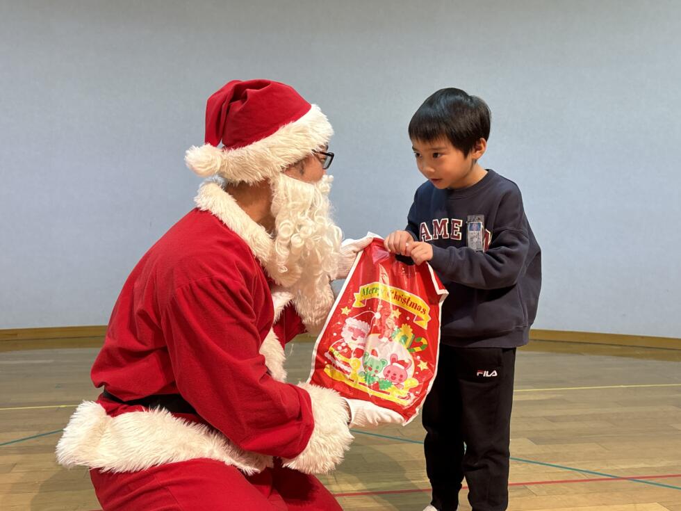 みんなドキドキワクワクしながらサンタさんの側へ行き、一人一人プレゼントを受け取ることができました💓