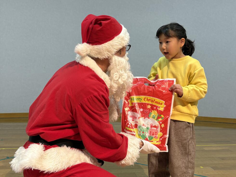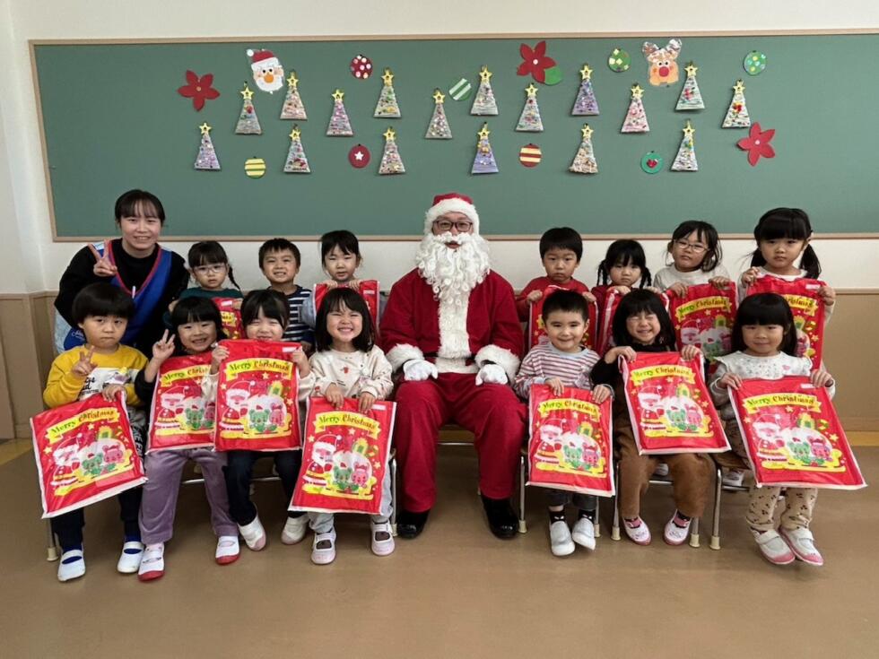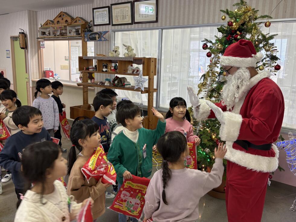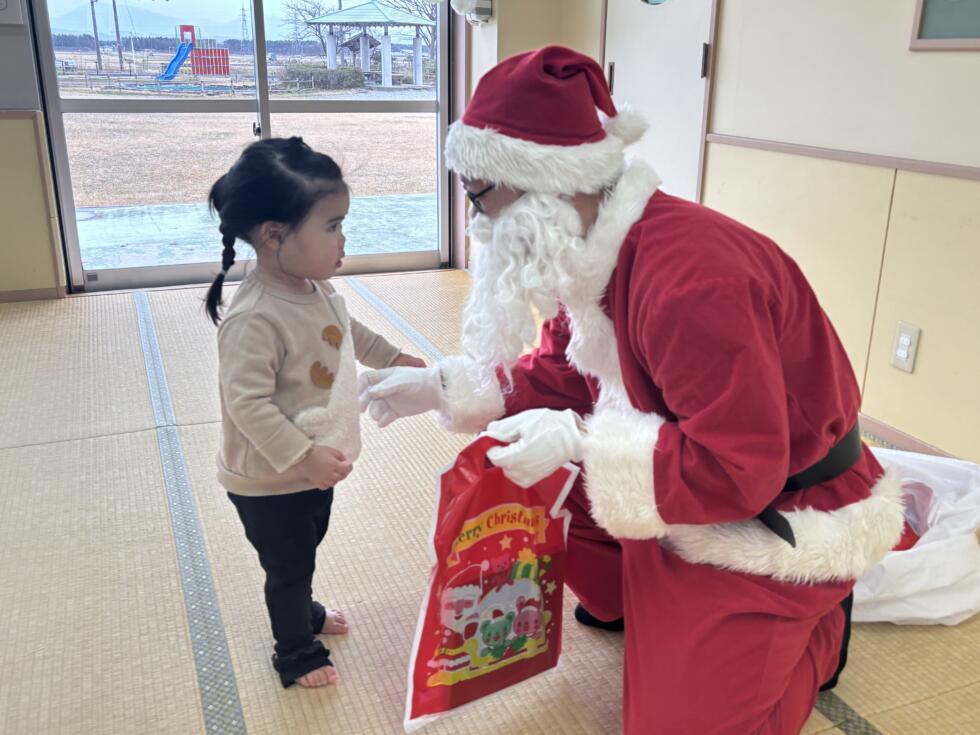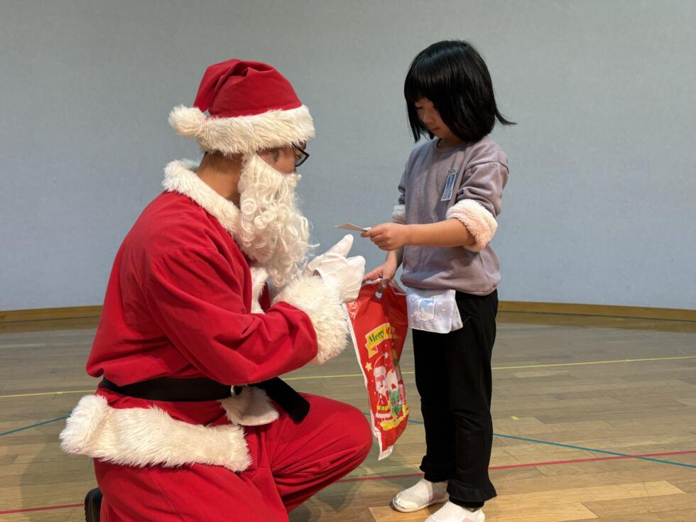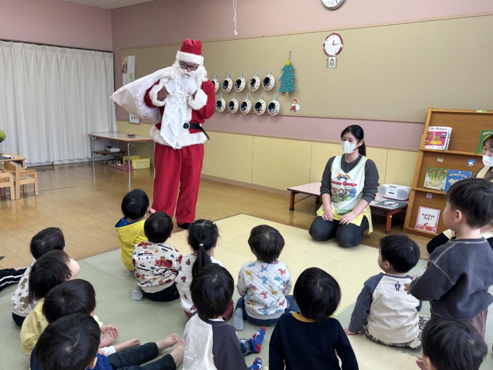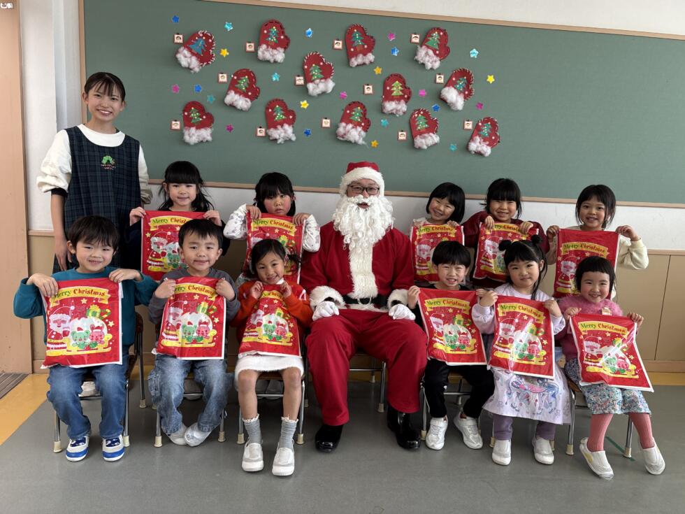 みんなドキドキワクワクしながらサンタさんの側へ行き、一人一人プレゼントを受け取ることができました💓