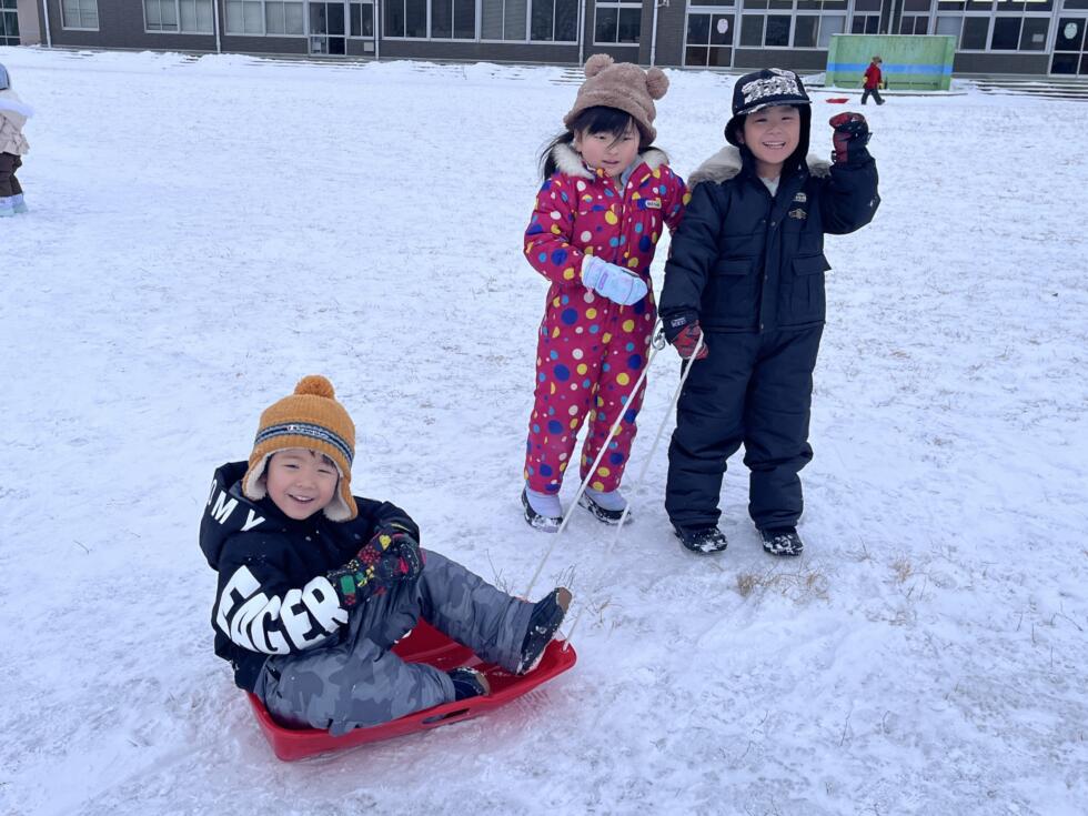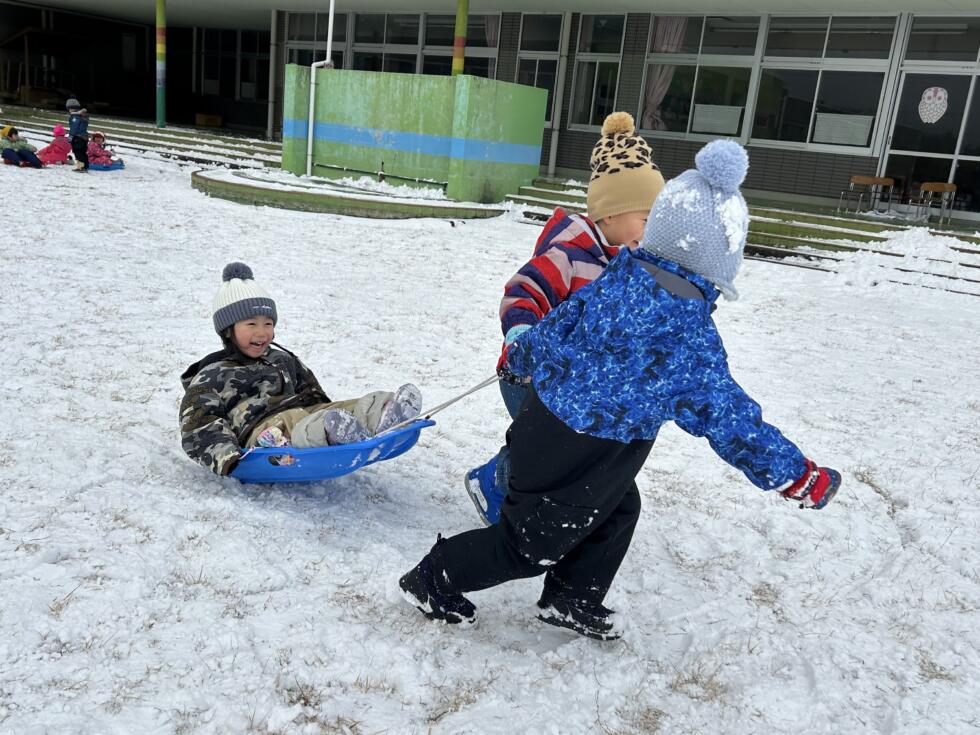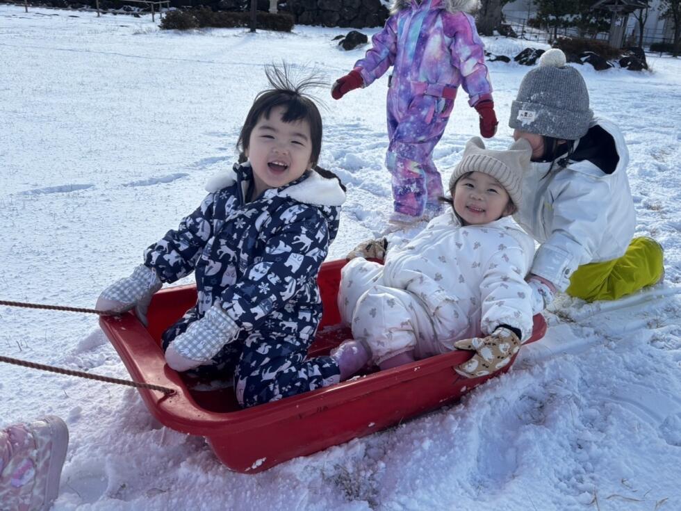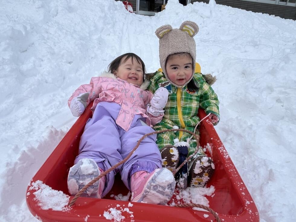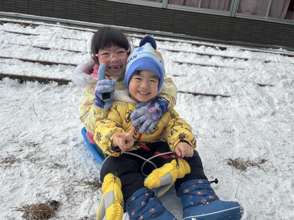 そりに乗って友達に引っ張ってもらったり、坂を滑り降りたりすることも楽しいですね♪