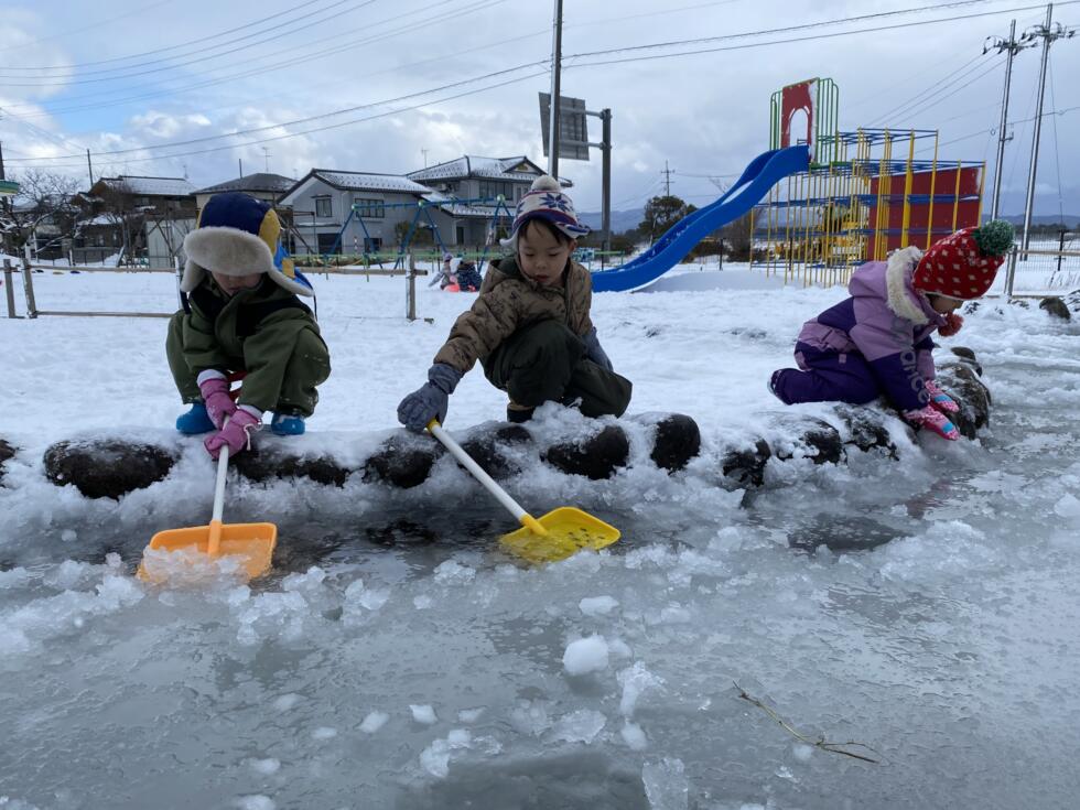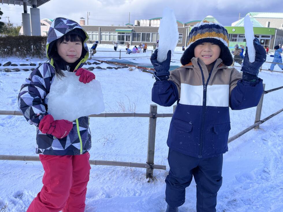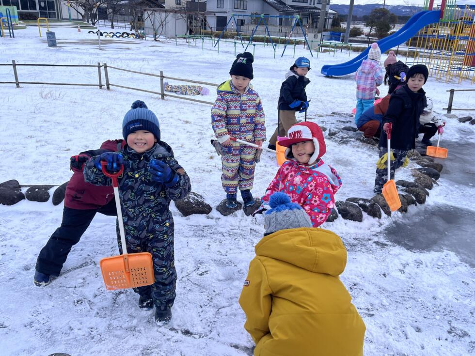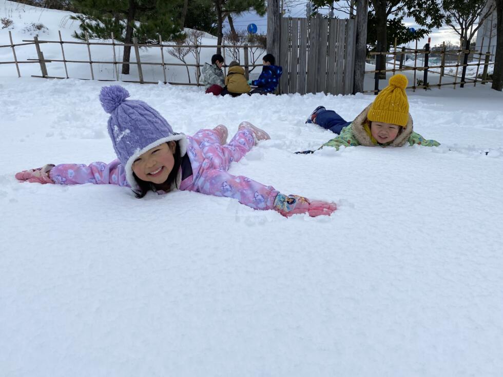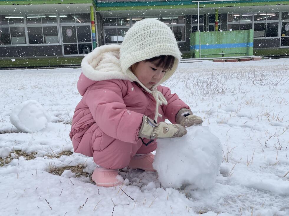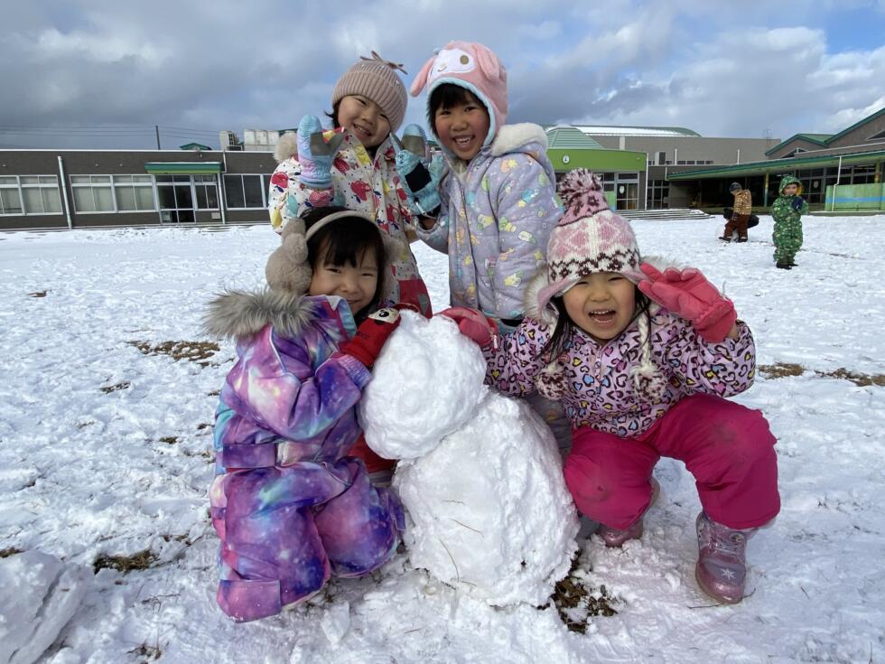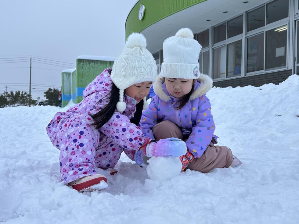 小さい組も大きい組もみんな毎日のように園庭で雪遊びをしています😁