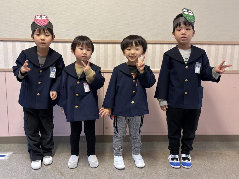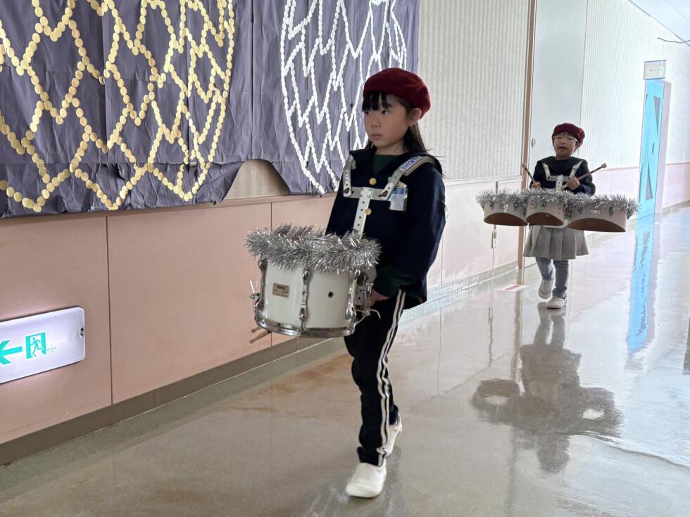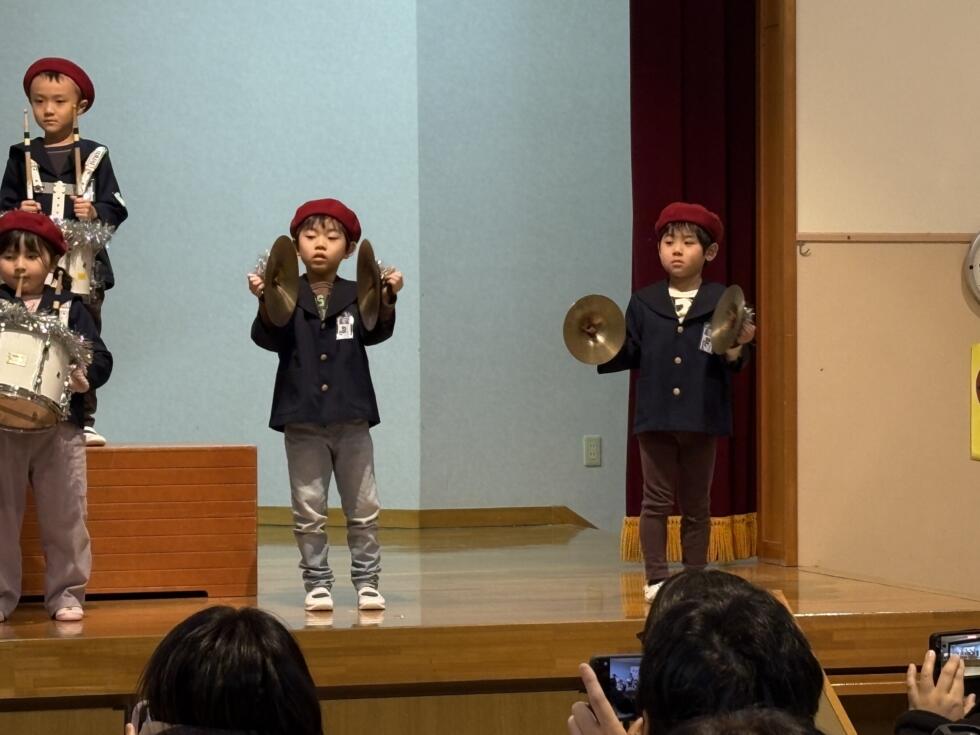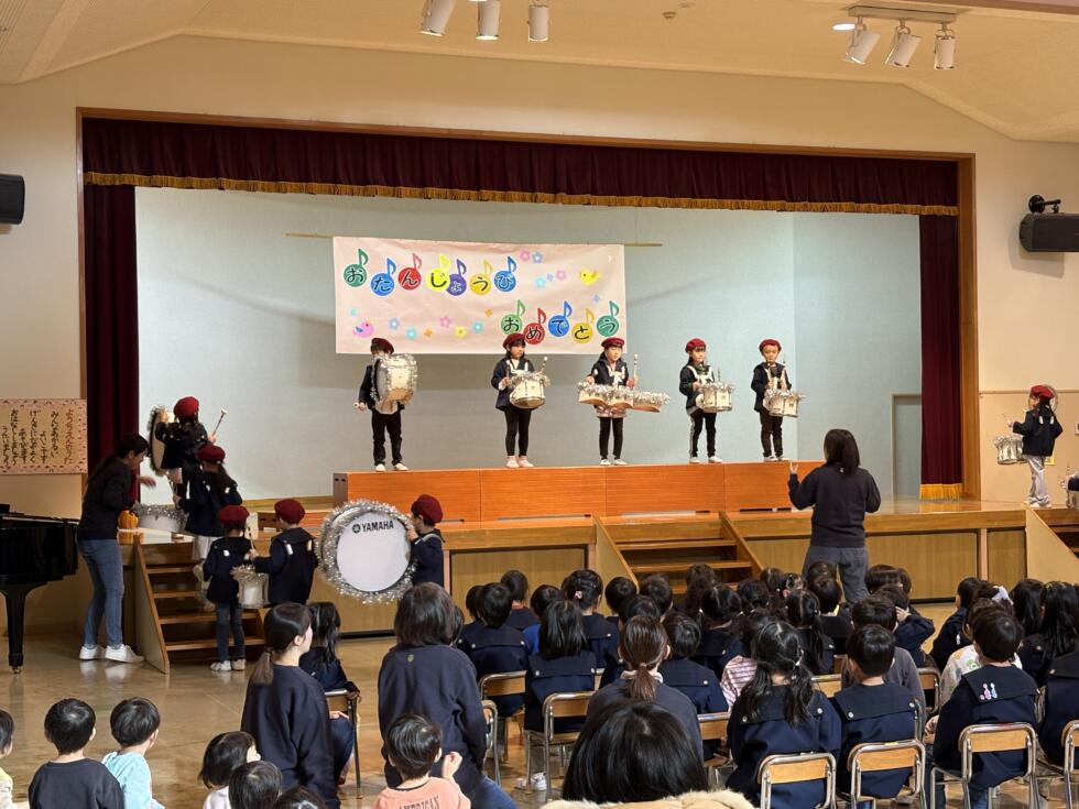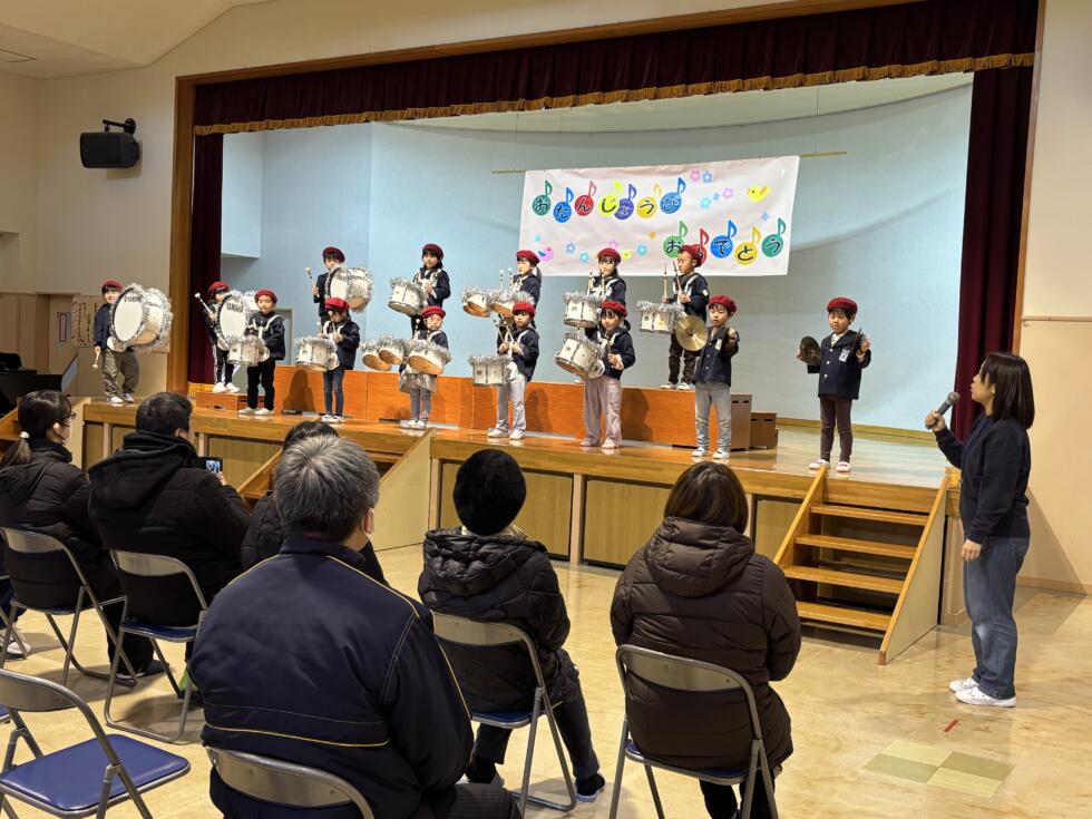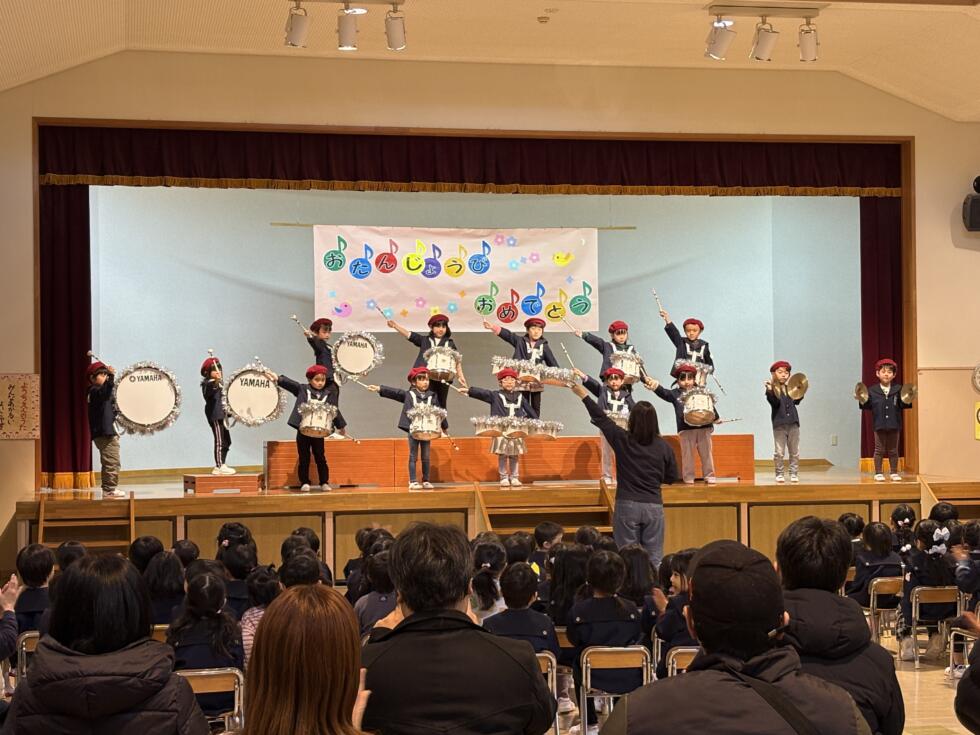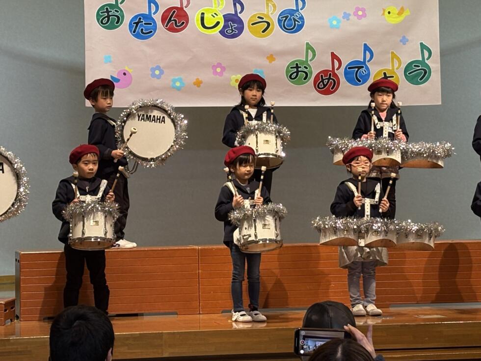 そして、この日は年長のぞみ組の鼓隊発表の日でもありました。のぞみ組のみんなには、幼稚園のみんなに向けての発表と、お家の皆さんに向けての発表と2回演奏してもらいました。