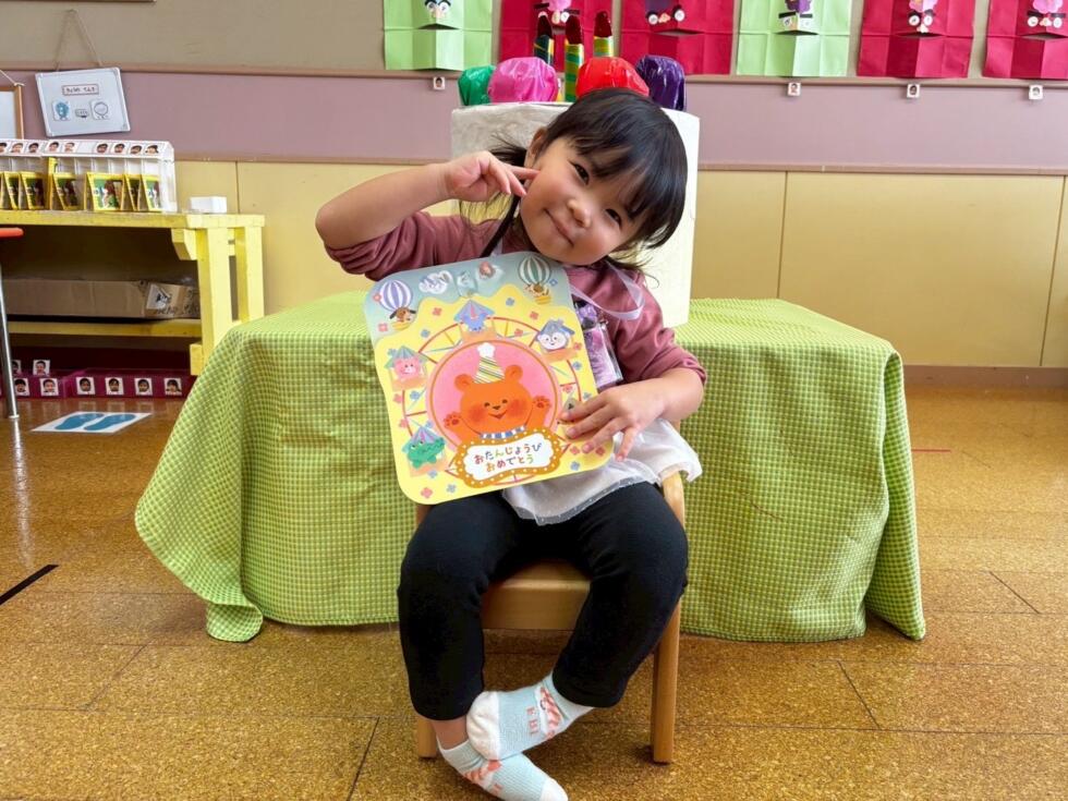 次は園長先生から誕生カードのプレゼントをいただきます。