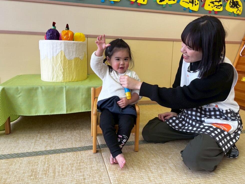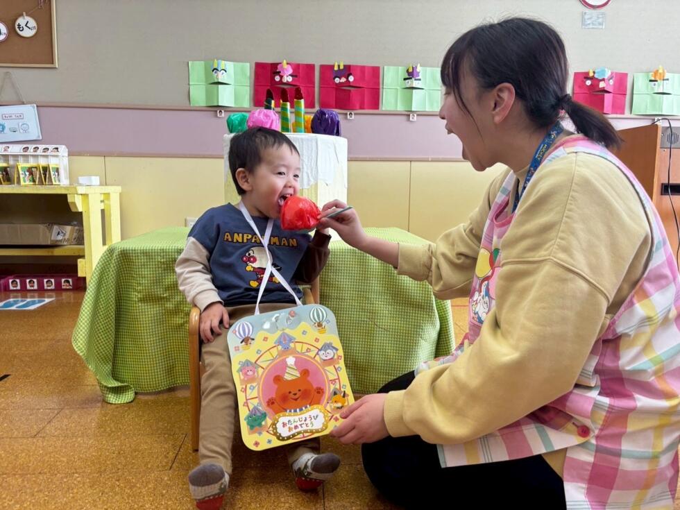 その頃、ほまれ組では2歳になったお友達をお祝いしていましたよ🌼