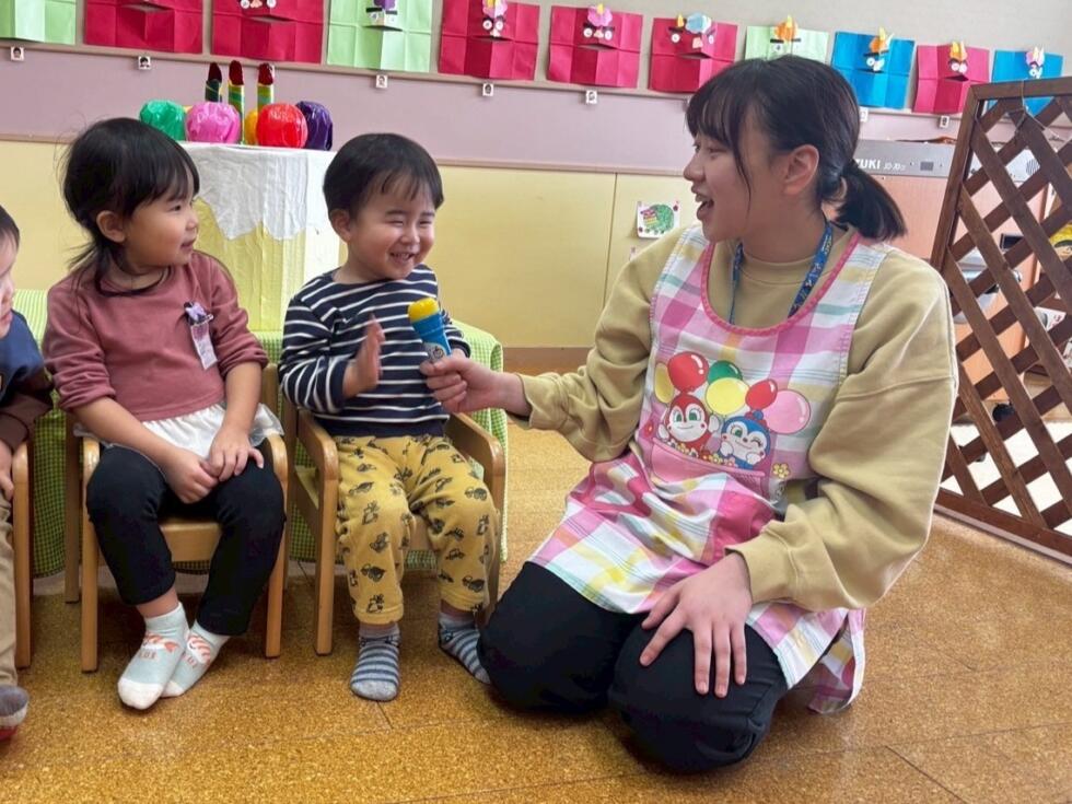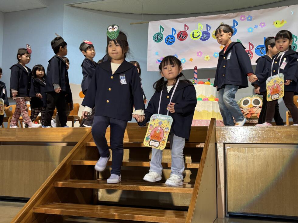 めばえ組では、3歳になった3人のお友達をお祝いしていました。