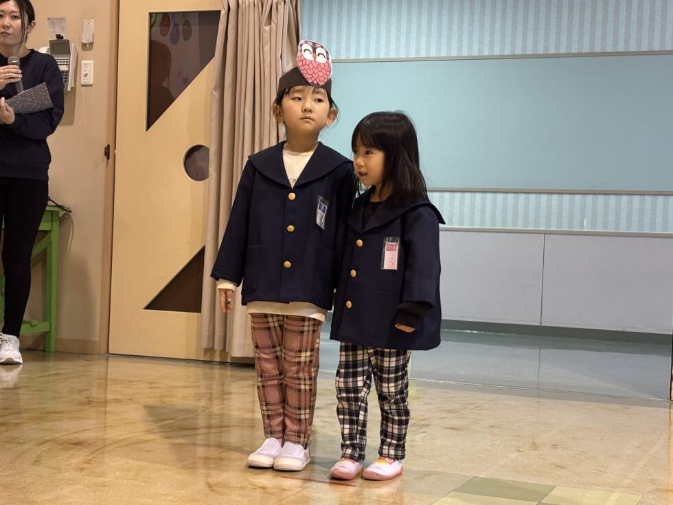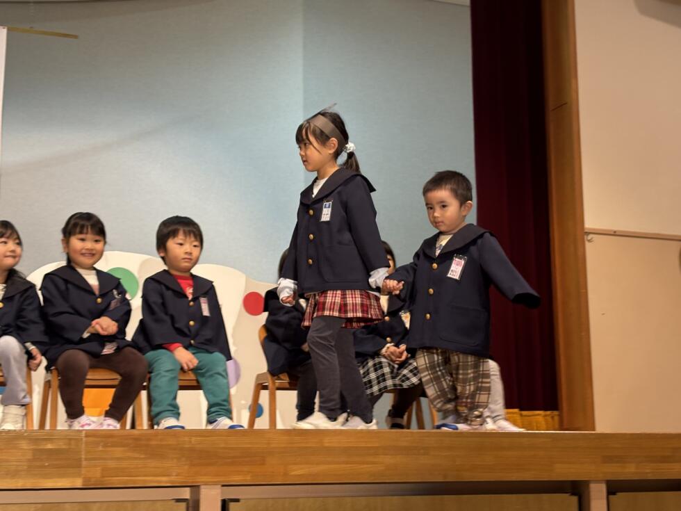 これは、幼稚園のみんなの前での発表直前の様子です。いつもと違う、緊張した雰囲気が伝わってきました。