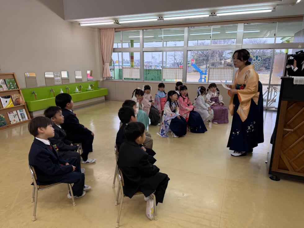 幼稚園のみんな、先生、いつも側で見守ってくれているお家の皆さんへ向けて、園生活での思い出や学んだことなどを、心を一つにして伝えくれました。