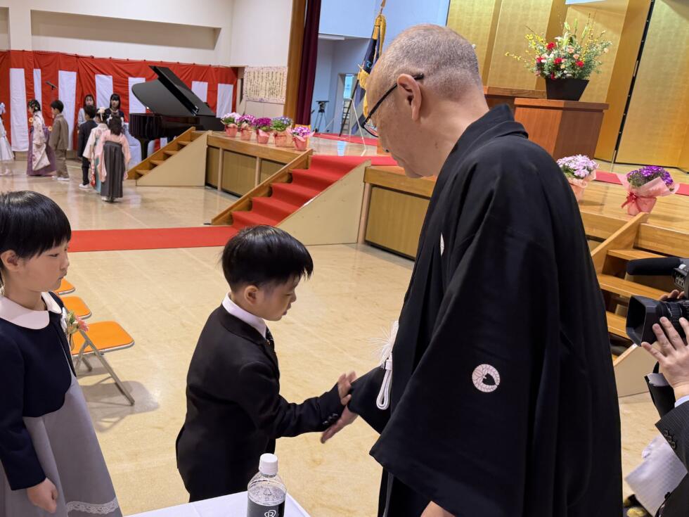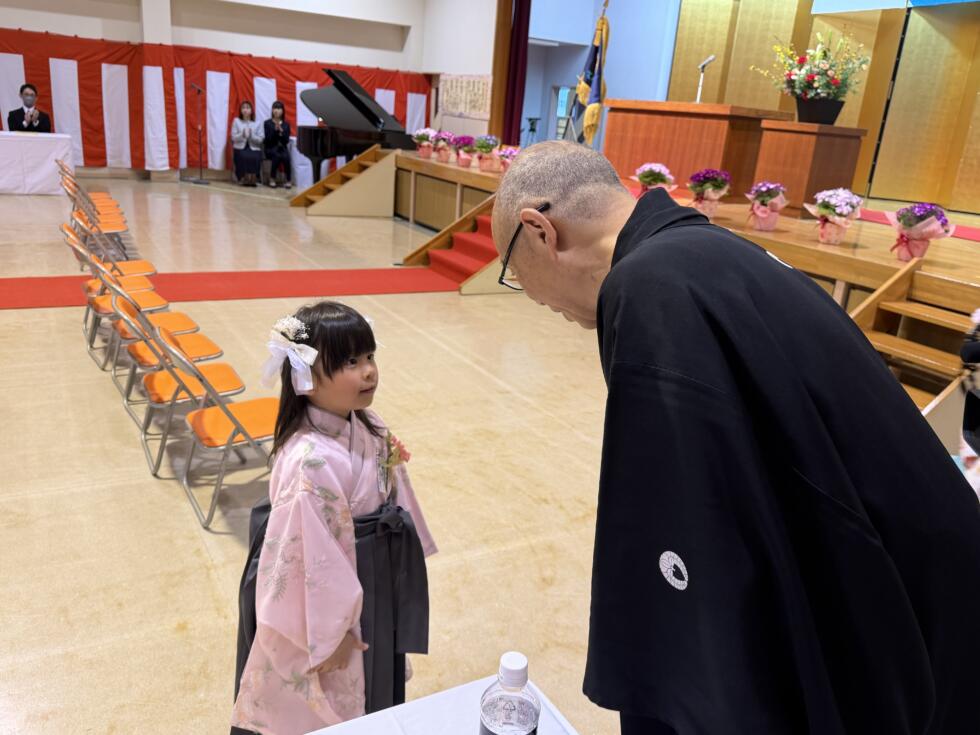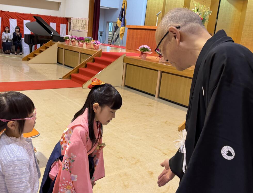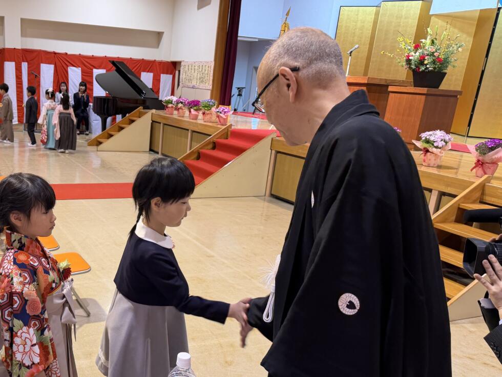 園長先生と「おめでとう」のタッチをしてホールから退場します✋