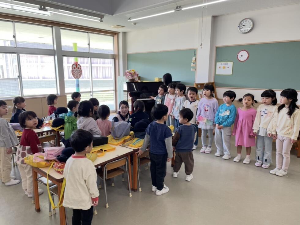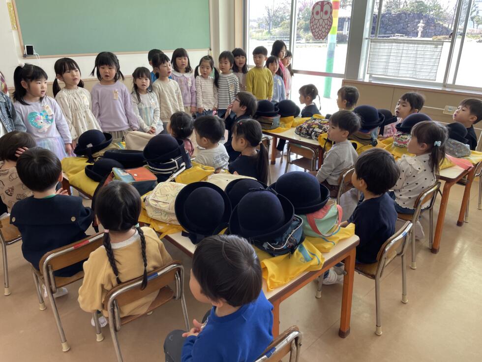 先週は年長組のみんなが歌や挨拶の見本になってくれました。