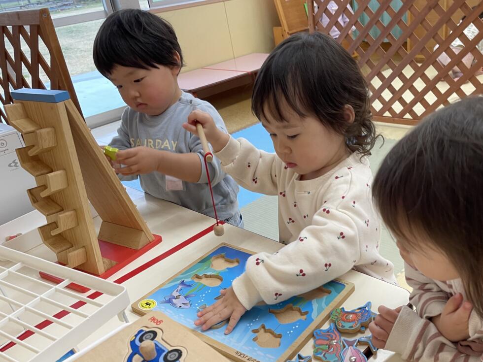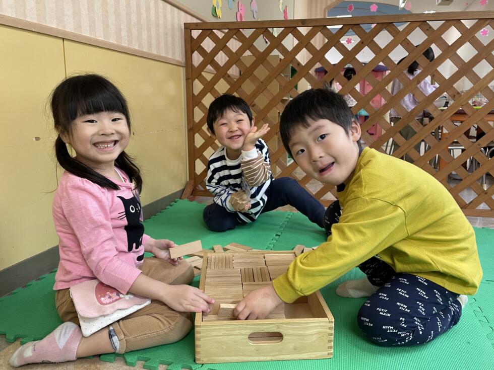 園内を散策したり、好きな玩具で遊んだりしています。園庭にも遊びに行っていますよ🌸
