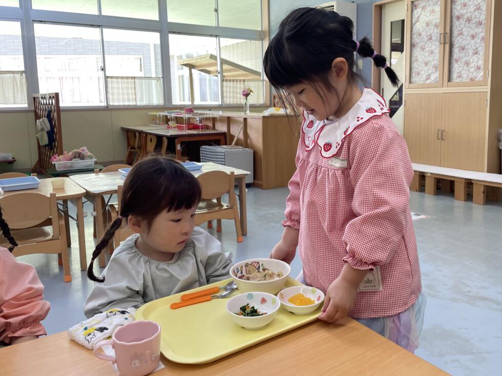 お昼の準備にも、年長組さんが手伝いに来てくれました。